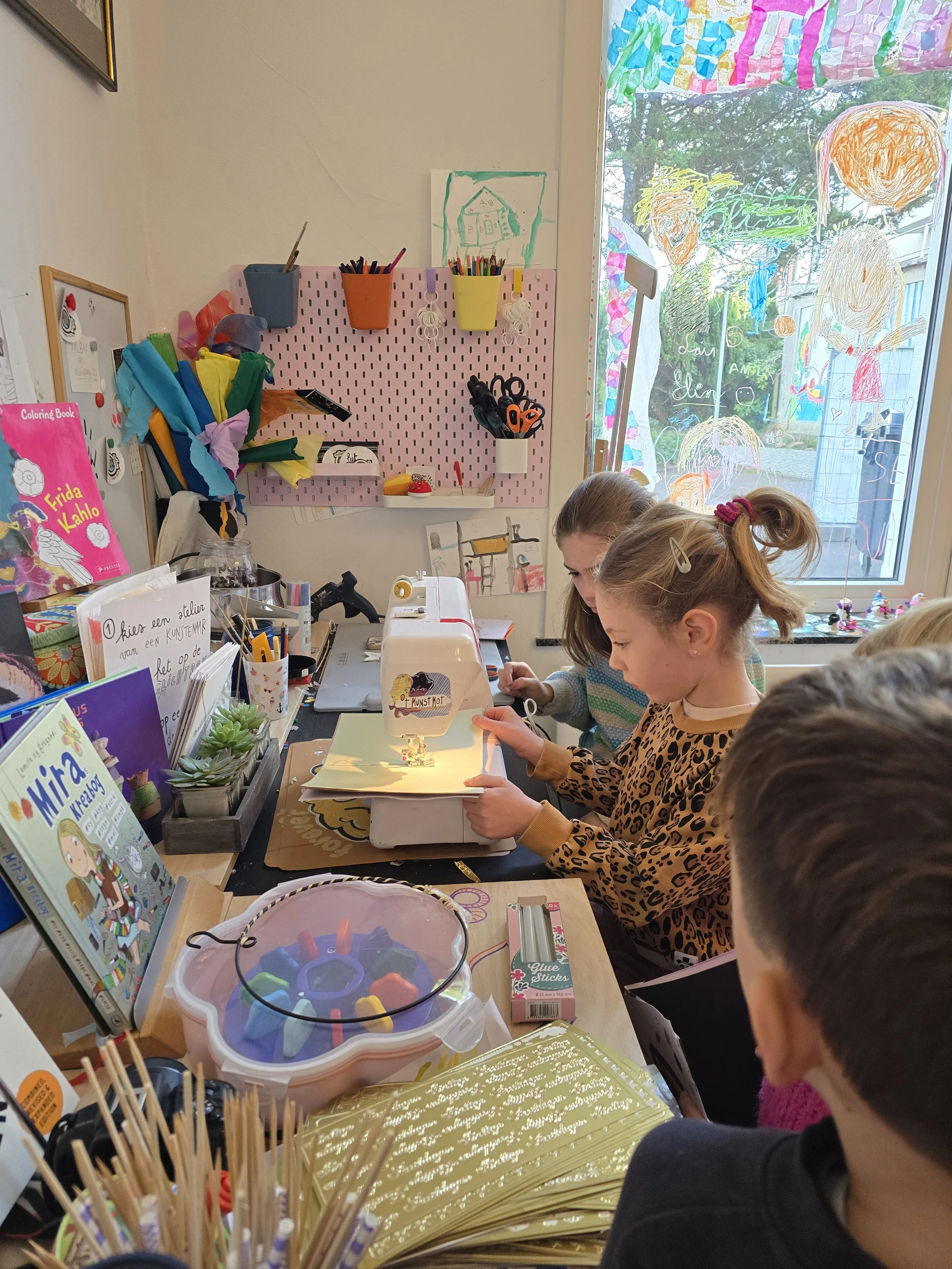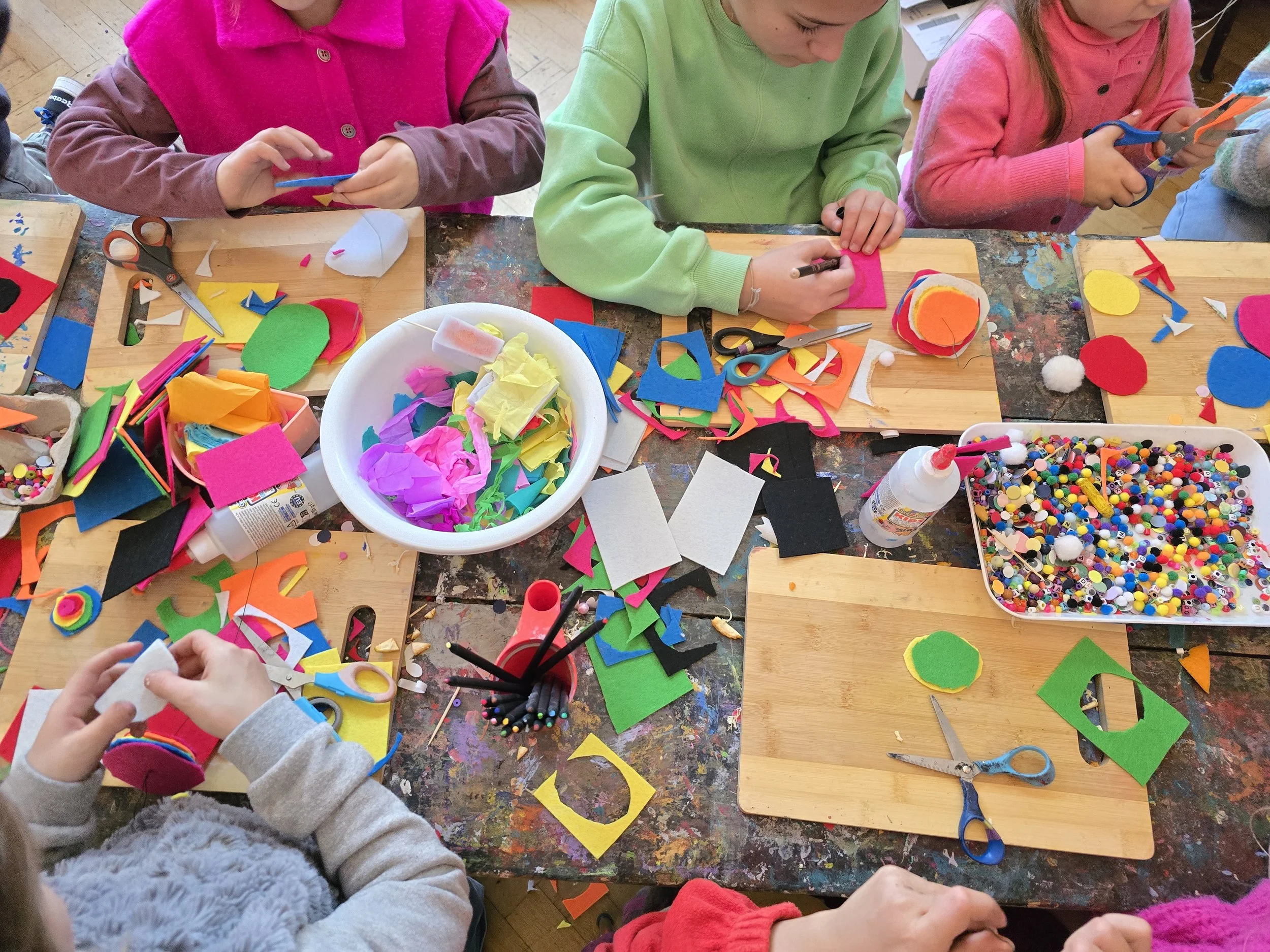 We geven zowel workshops op verplaatsing als in ons atelier voor kinderen en jongeren.